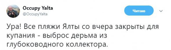 "Пропаганда з кожної праски кричить "Крим наш" і закликає їхати росіян на відпочинок. Але про те, що застарілі комунікаційні системи не в змозі впоратися навіть з відходами місцевого населення, не те, що мільйонів наїхавших туристів, ніхто не говорить. Всі відходи, у будь якому разі, стікають у море. Труба виведена далеко, і ніби очікується, що фекалії розчиняться у морі. Однак сильні зливи призводять до того, що потоки води з- гір на берег підхоплюють вміст вигрібних ям. Все потрапляє прямо на пляжі. Сам не раз бачив, як зливова каналізація виведена прямо на закритий лікувальний пляж", - розповів лікар.
