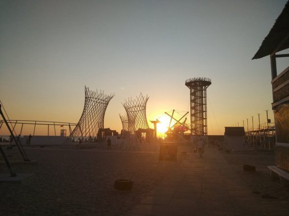 На фото - неприбране занедбане узбережжя. Від оригінальних архітектурних споруд залишилися проржавілі каркаси.