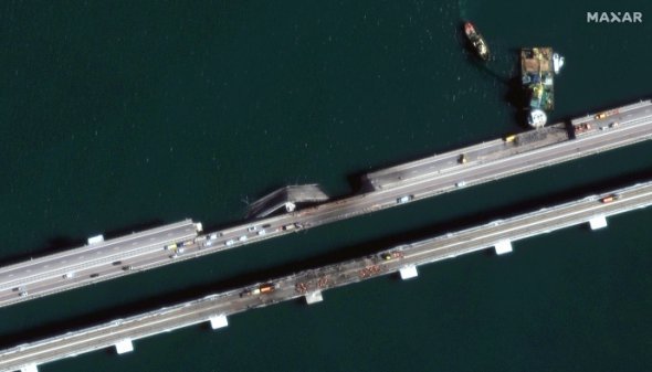 Американська компанія Maxar опублікувала нові аерофотознімки пошкодженого Кримського мосту.