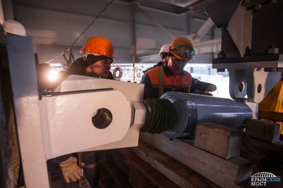 "Це як ремені безпеки в автомобілі. Вони дозволяють прольотам моста "дихати", тобто безперешкодно зміщуватися при непомітних переміщеннях, викликаних температурними умовами. А під час землетрусу шок-трансмітери спрацьовують і розподіляють сейсмічне навантаження рівномірно по опорах", - повідомив технічний директор "Інституту Гіпростроймост - Санкт-Петербург" Ігор Колюшев.
