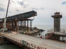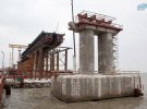 В анексованому Криму російські окупанти почали споруджувати залізничні прольоти на мосту через Керченський полив, який з'єднає РФ з анексованим Кримом.