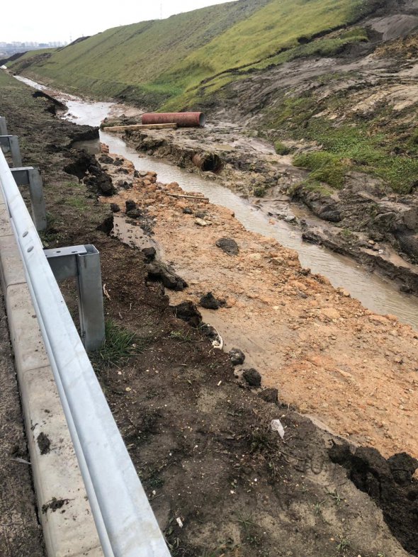 Ні ділянці автодороги "Таврида" підрядна організація ліквідувала насипаний ґрунт. На цьому місці з'явився котлован який заповнився водою і з'явилася загроза підтоплення ділянки дороги.
