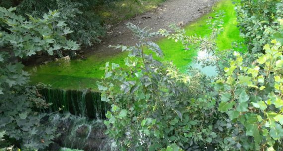 В окупованій Ялті річка Дерекойка стала отруйно-салатового кольору.