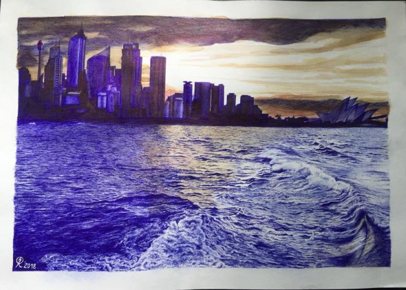 "Чарівний Сідней, виконаний на папері формату А4 за допомогою кулькової ручки, чаю та олівця", - написала у Facebook донька політв'язня Юлія Сущенко.