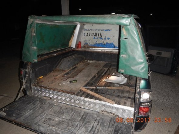 "Транспортний засіб мав спеціально виготовлену схованку - подвійне дно. Після демонтажу конструкції в порожнинах днища автомобіля в місцях, не призначених для зберігання товарів, було виявлено понад 55 кілограмів ковбасних виробів виготовлених в України і 4 півторалітрові пляшки з медом, - повідомила прес-служба "кримської митниці".
