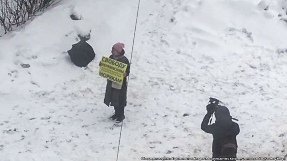 Російські активісти влаштовують поодинокі пікети на підтримку полонених українських моряків.