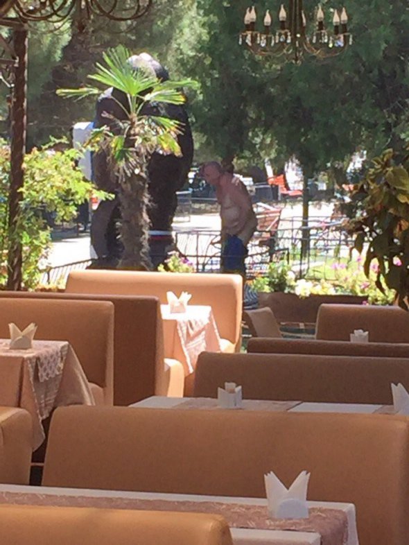 "Алушта. Туристичні хроніки. За олімпійським ведмедиком! Серун! А на зауваження йому наср*ти в прямому і переносному сенсі", - йдеться в повідомленні під фото, на якому чоловік справляє природню потребу неподалік від ресторану.