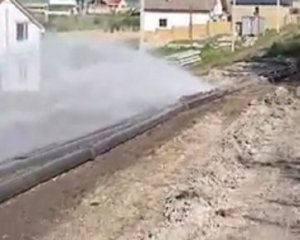 На сайті є фото з місця інциденту, на якому видно, як вода з труб, покладених прямо на землю, б'є фонтаном.