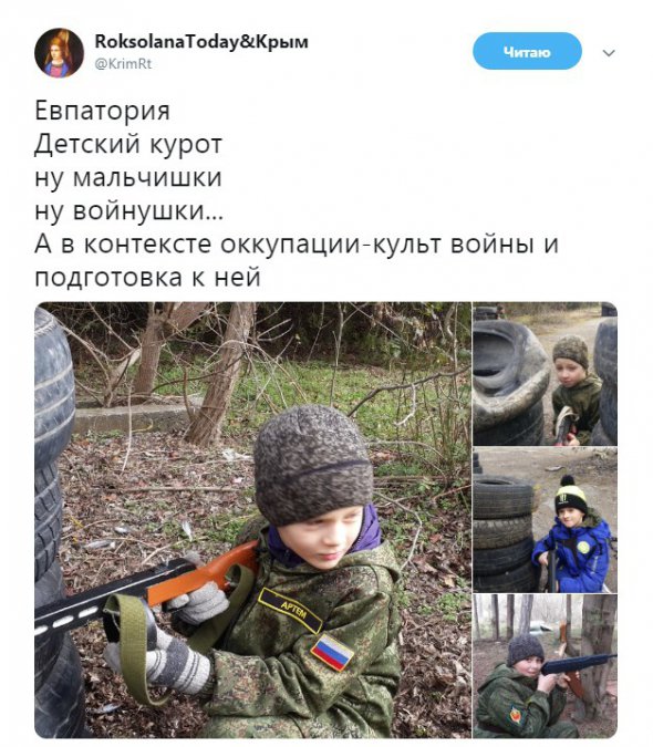 "Євпаторія. Дитячий курот, ну хлопчаки, ну війнушки... А в контексті окупації - культ війни і підготовка до неї", - повідомила блогер RoksolanaToday&Крим в Twitter.