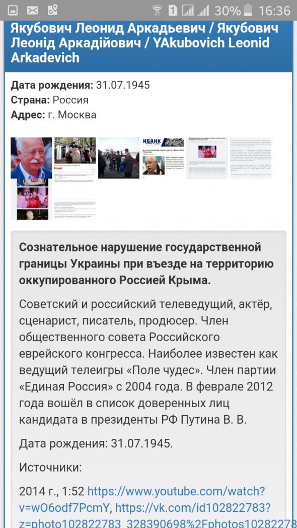 Якубович виявився в чорному списку через "свідоме порушення державного кордону України" при в'їзді до Криму.