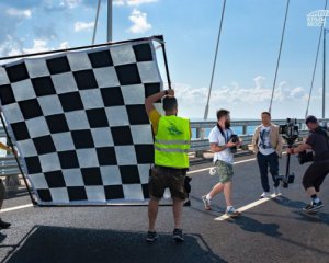 "У зв'язку з проведенням зйомок кліпу групи "Любе" вдень 18 липня, рух Керченським мостом в певні інтервали часу здійснюватиметься за тимчасовою схемою: з можливими короткостроковими, не більше трьох хвилин приблизно раз на годину, обмеженнями руху у напрямку до Криму", - повідомили в інфоцентрі.