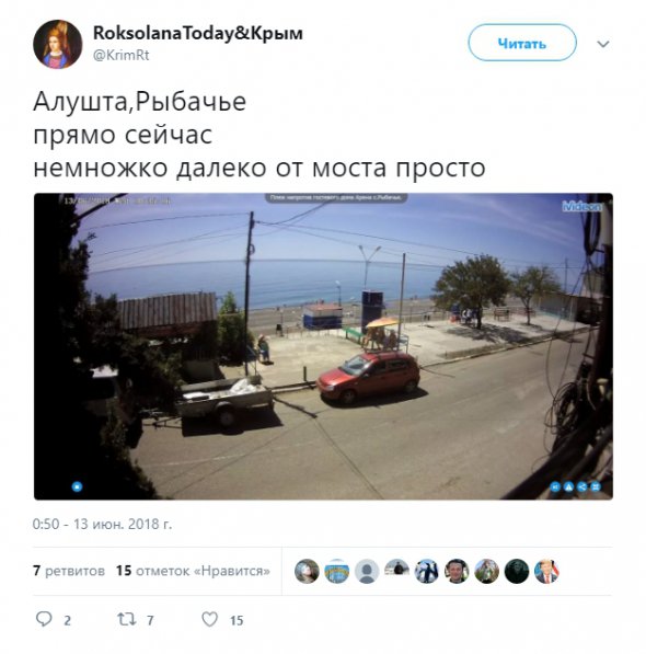 "Алушта, Рибаче. Прямо зараз. Трохи далекувато від мосту", - підписали одне із фото користувачі.