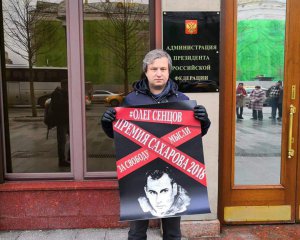 Головний редактор журналу "Мистецтво кіно", російський журналіст Антон Долін у Москві вийшов до будівлі Адміністрації президента Росії з пікетом на підтримку. Фото з акції він виклав на своїй сторінці у Facebook.
