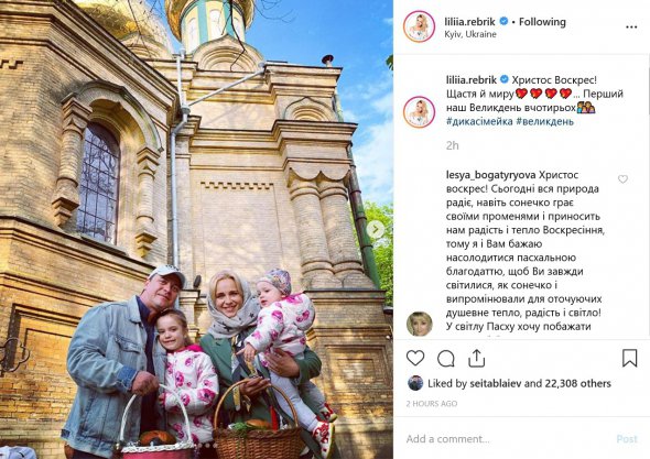 Українська телеведуча Лілія Ребрик поділилася в соцмережі сімейним фото, побажавши своїм фоловерам щастя і миру.