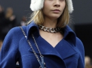 Спираючись на фірмові маркери стилю Chanel - клітку, твід, букле, холодний блакитний, сірий і рожевий, графічне ч/б і круглі комірці - дизайнер населяє своє середньовічне королівство металістами в шипованих кольє-ошийниках і браслетах, які замінили традиційну нитку перлів, шкіряних чоботях- панчохах, обвішаних ланцюгами, хутряних шоломах, прикрашеному коштовними аплікаціями денимі і мотоциклетних рукавичках.