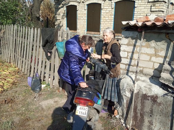 "Тричі потрапляла під обстріли, кулями пробило бак скутера. Але страшніше, коли приїздила до одної жінки, Лідії Петрівни. Вона під самим териконом живе. Тільки-но розібрала сумку з продуктами, як у прямому сенсі підлога почала дрижати під ногами. Перші рази одразу плакала і панікувала, а вона мене заспокоювала. Вона звикла, бо нікуди не виїздила, просто сиділа вдома і молилась. Іноді ховалась у подвалі сусідки. Зараз у "червоній зоні" живуть кілька моїх бабунь. Відвідувати їх намагаюсь до третьої дня, бо після обіду у нас і зараз стріляють", - каже Оксана.