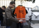 О 18.00 з'являються працівники "Беркуту", відтискають працівників фірми від натовпу. Нічого не пояснюють. Через їхні голови люди міняють футболки на гроші.