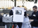 "Спочатку ми отримали два дозволи: одне на проведення мирного зібрання, друге - на продаж футболок. А потім продавати не дозволили. Ми будем футболки дарувати, а отримувачі будуть кидати у коробку благодійні внески. За чоловічу футболку 90 гривень, за жіночу - 95. Чашки за 50", - пояснив перед початком акції директор "Простопрінту" Денис Олейников.