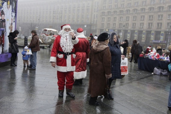 25 грудня, у католицьке Різдво, 20 чоловіків, переодягнених у Дідів Морозів, товклися під ялинкою на Майдані незалежності. Вони були одягнені у червоні пальта, кожухи, жіночі махрові халати. Хапали за руки перехожих, пропонували сфотографуватися з ними за 25 грн.