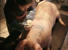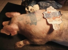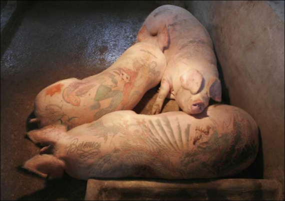 В якості сюжетів для тату Вім використовує різні малюнки - від русалочки Діснея до багатокольорових східних узорів в стилі якудза. Після татуажу свинки певний час живуть на фермі. Потім, після досягнення певного віку, свиней забивають. Після чого шкіру з них знімають і натягують на полотно, отримуючи таким чином своєрідні "картини".