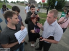 - Мирне зібрання проводимо. Це дозволено. Святкуємо День прикордонника, - відповідає Мельниченко та рушає в бік міліціонерів. Його зупиняють.