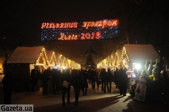 У суботу, 15 грудня, у Львові розпочався четвертий Різдвяний ярмарок. Підприємці продають різну святкову продукцію зі спеціальних дерев'яних будиночків.