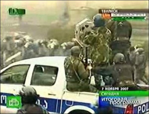 На декількох поліцейських автомобілях були встановлені прилади, що нагадують шестикутники на стійці. Як пояснив телекомпанії неназваний експерт в області спеціальних технічних засобів, при включенні така установка викликає у людини гострий біль у вухах, відчуття нез"ясовного, неконтрольованого страху і паніку.