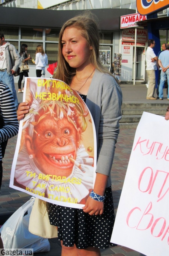 "Коли я стою на зупинці, а біля мене чоловік чи жінка, які палять, то мені просто хочеться одягнути протигаз, адже повітря й так загазоване, дихати неможливо. Також у парках і скверах часто сидять мами з дітками, які не тільки палять, а й вживають алкоголь. А потім діти мавпують поведінку своїх батьків, не кажучи, що вони й так є пасивними курцями. Сподіваюся нам вдалося привернути увагу до таких явищ", - пояснює мету акції організаторка.