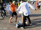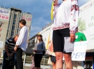 Організаторка акції Діана Тяско в цей час читає в гучномовець лекцію про шкоду куріння. Учасники повторюють за нею: "Здорова людина – здорова країна!" Більшість перехожих проходять повз, ледве звертаючи увагу на перформанс.