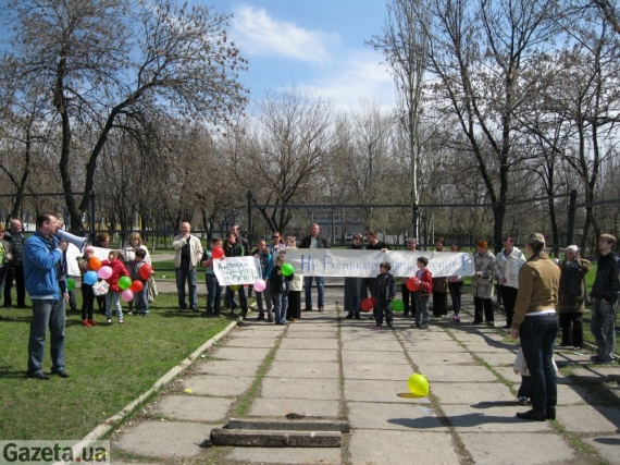 Мітингувальники кричали: "Сквер наш!", "Руки геть!". До них вийшов керівник ТОВ "Донецькшахтопроходка" Віктор Левіт. Він запевнив присутніх, що будівництво почнеться тільки після громадських слухань. На це жителі відповіли криками: "Не бреши! Слухання треба проводити раніше, ніж ставити паркан!".