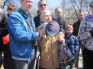 Після мітингу жителі розламали металеві конструкції, які повинні були служити огорожею майбутнього храму і склали їх під стінами підприємства, що претендує на сквер.