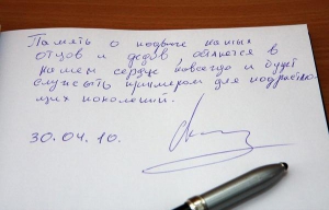 Новий одеський губернатор Едуард Матвійчук не вміє грамотно писати російською. Про це свідчить його запис у книзі почесних гостей школи N 57, де губернатор відвідав "Урок мужності", пише в своєму блозі головний редактор інформаційного агентства "Контекст-Причерноморье" Олександр Осташко.