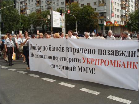 22 липня у зв"язку із закінченням мораторію в "Укрпромбанку" на задоволення вимог вкладників відбулася акція цивільного протесту вкладників біля будівлі банку на Л.Українки, 26.