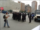 О 10.30 вийшовши на вулицю, вони перекрили рух на 1 годину, щоб привернути увагу до своєї проблеми. Спочатку міліція, а потім курсанти в чорній формі з шоломами розігнали людей, відновивши рух.