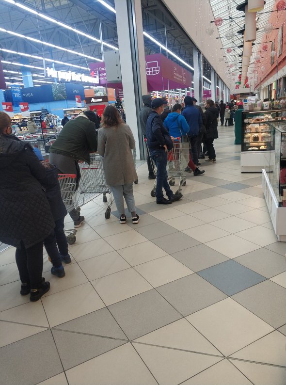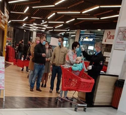 Чоловік знизує плечима, бере дитину за руку. Разом ідуть купувати продукти. В торговому центрі ввечері 18 березня від кількості людей не видно просвітку. Місцева влада оголосила про суворий карантин з 19 по 28 березня через погіршення ситуації з коронавірусом. У місті не працюють ресторани, кафе, ТРЦ і заклади культури. Школярів відправили на дистанційне навчання.