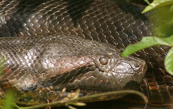Анаконда - вид змій, які проживають у Південній Америці ближче до сходу Анд. Середня довжина - 5-6 метрів, подеколи зустрічаються змії довжиною 8-9 метрів. Змія чекає на свою жертву, яку потім обплутує своїм тілом та душить, після чого ковтає цілою.