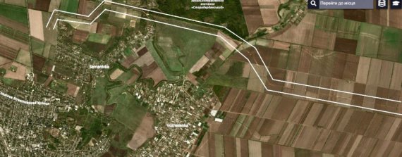 Ворожа лінія оборони починається на околицях села Семенівка на заході й виходить за межі населеного пункту Маринівка на сході регіону, свідчать знімки, зроблені супутником Sentinel-2. Фото проаналізував Центр журналістських розслідувань.