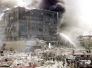 Атаки двох Боїнгів зруйнували і спалили дві вежі, ще одна згоріла в результаті серії вибухів газу і пожежі .