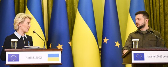 Вранці 8 квітня глава Єврокомісії Урсула фон дер Ляєн прибула поїздом з Брюсселя, щоб продовжити процес подачі заявки України на вступ в ЄС. Того ранку на Донбасі стався ракетний обстріл. Дві ракети влучили в залічничну станцію Краматорська - загинули 60 осіб.
