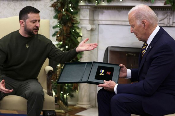 Наступного разу я бачив його за кілька днів до Різдва 2022 року у Вашингтоні - його першій закордонній поїздці з початку вторгнення. Білий дім надіслав літак ВПС США за ним, і він з'явився в Овальному кабінеті з Джо Байденом перед виступом у Конгресі.