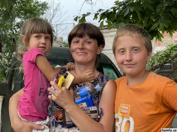 У короткій білій сукні з грецьким орнаментом стоїться у тіні дерев жінка з хвостиком на голові. Поруч бігають босоніж діти – дівчинка й хлопець. Нещодавно поліція скидала родині з дрона воду, а вже зараз їх вдалося евакуювати.
