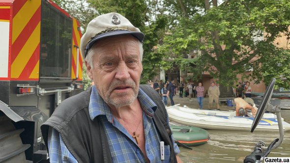 – Приїхав я 6 червня в шесть утра. Подивився – уровєнь Дніпра був нормальний. Потом почув новость, що взорвали Каховку, то приїхав додому і почав піднімати вєщі наверх, – каже літній чоловік і котить у руках старенький велосипед. Його обличчя неохайно поросло сивою бородою, на голові в нього моряцький кашкет. – Начав прибирать у гаражі, в обід приїжджаю, а вже води було вище коліна.