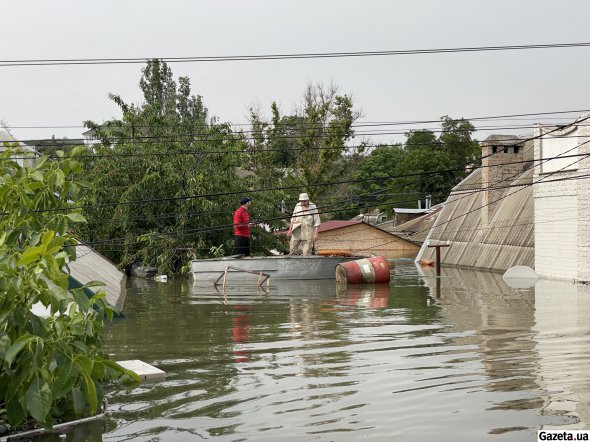 – У човен сідали, то вже вода до колін була. Сиділи у сусідки на другому поверсі й думали, що вода зупиниться, – зізнається жінка. – Але вона піднімалася, а зараз метри чотири піднялася. Ночували на горищі. Хлопці наші дуже оперативно спрацювали. Зараз на нашій Чайці-2 вже нікого не залишилося. Мій папа з хлопцем тільки.