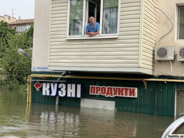 – Ще на два метри підніметься вода, – запевняє чоловіка з другого поверху Рустем. Стоїть на утепленому балконі у блакитній футболці.