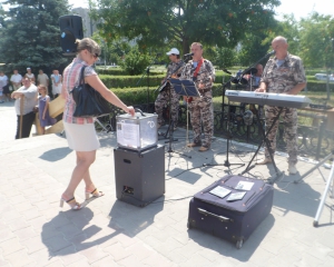 "Зустріч з жителями була незапланованою, - розкладаючи обладнання, розповідає керівник народного аматорського колективу Віктор Маришев. - Ми вже побували в таких містах як Старокостянтинів, Шепетівка, Остріг. Нам зателефонував голова спілки Василь Пундик. Ми навіть не встигли розклеїти оголошень, одразу погодились. Адже ми приїхали, щоб допомогти нашому однополчанину і бойовому другу Володимиру Качмару, у якого хворий внук. Мати Вадика Романенка Інна Романенко-Антипова залишила на одному із сайтів соціальної мережі лист-прохання. Ми помістили його на нашу скриньку.