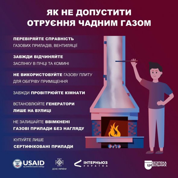 В інфографіці від Державної служби з надзвичайних ситуацій пояснили, як не допустити отруєння чадним газом.