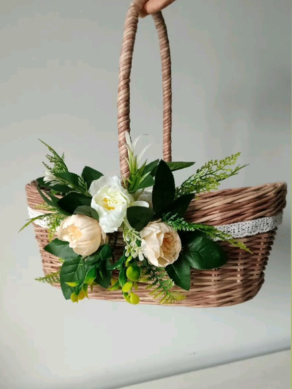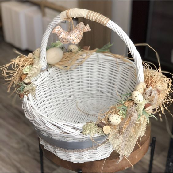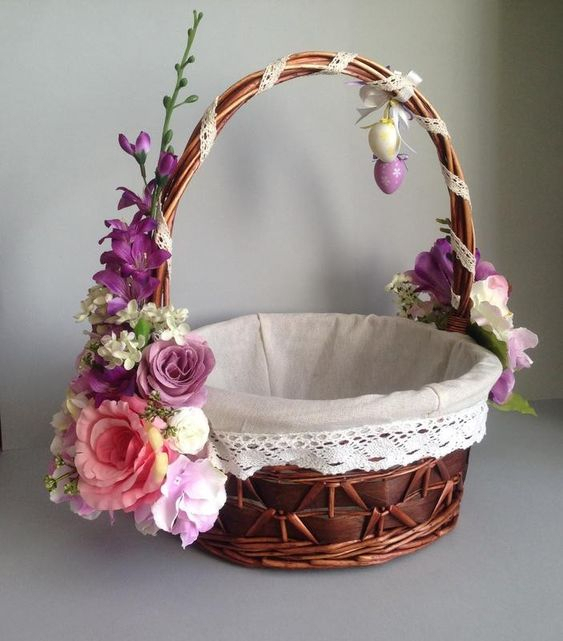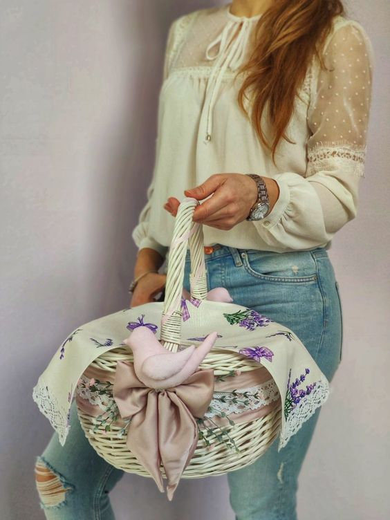 Помістіть у кошик шматок білої тканини з мереживом так, щоб її кінчики трішки виглядали зовні.