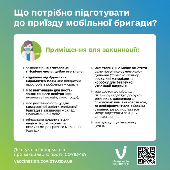 - забезпечити приміщення для вакцинації та медичного спостереження після вакцинації згідно з вимогами МОЗ;