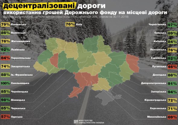 Лише Хмельницька область станом на 30 листопада повністю використала кошти Дорожнього фонду на ремонт шляхів місцевого значення.