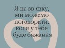 "Я на зв'язку, ми можемо поговорити, коли у тебе буде бажання"